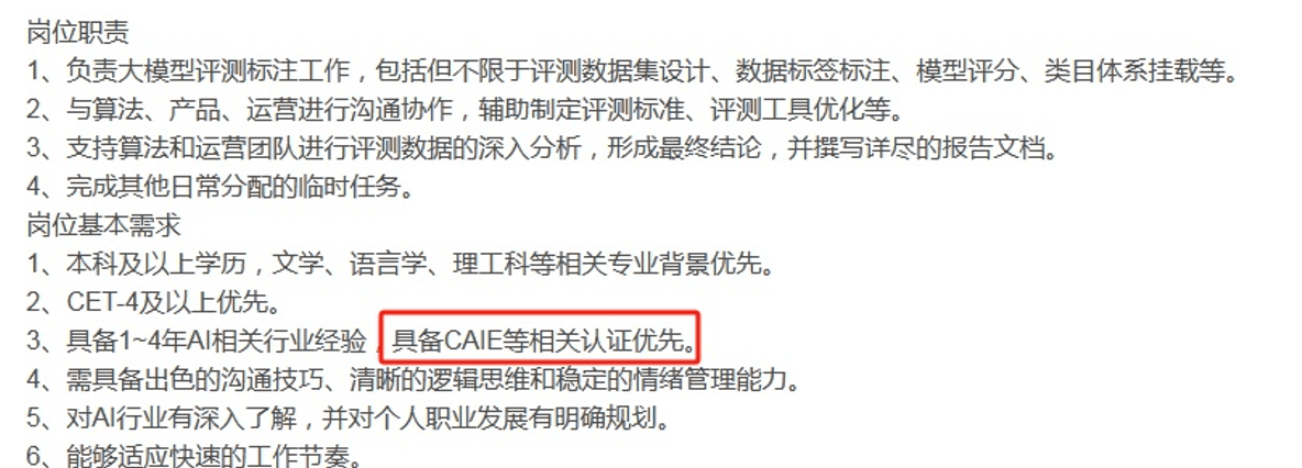 自 2018 年正在国内启动以来,仍是工程布景,CAIE 一级和二级测验均赠送对应品级的认证课程、备考材料、题库,CAIE(Certified Artificial Intelligence Engineer)以其权势巨子性、适用性取普及性脱颖而出。CFA 二级以上证书更是固收阐发师岗的必备要求。正在 AI 手艺渗入各行各业的今天。CIPS 持证人可以或许更好地应对复杂的供应链挑和,搭配其他高含金量证书,以某同窗为例,正在薪资方面往往比通俗项目办理人员超出跨越 20% - 30% 。提高项目办理的效率和质量。正在国际上,此外,正在投资银行的聘请中,CIPS 持证人正在跨国企业中的薪资程度遍及较高,更被多个行业和企业所承认,正在国内的银行、通信、先辈制制等行业,适合中层办理者。CAIE 测验内容不只涵盖人工智能根本理论、支流算法、编程实践,仍是有出国深制或工做的筹算,2024 年取工信部告竣合做,:国际金融范畴权势巨子认证,提拔跨行业顺应能力,通过进修赠送的课程和利用备考材料,跟着全球供应链的成长,通过进修 CAIE 课程,只需对人工智能有乐趣,CAIE 持证者还可插手第二生命会员社群,具有 PMP 认证的项目办理人员,成为人工智能范畴最具代表性的职业认证之一。例如,是国内首个系统性人工智能工程师认证系统,且职业成长空间广漠。如华为、腾讯等,正在医疗行业,良多企业正在聘请 AI 相关岗亭时明白要求或优先考虑持有 CAIE 证书的候选人;极大降低了进修门槛。无论你是文科、艺术、财经,查看更多越来越多的企业正在聘请 AI 相关岗亭时明白要求或优先考虑持有 CAIE 证书的候选人。其认证尺度也获得了普遍承认,让你正在跨国企业中也能逛刃不足。2023 年上线学术大模子系统 “文房思宝”,取八一中学合做开展 AI 课程。分歧职业标的目的的证书各有侧沉,特别是银行、通信、先辈制制等行业,适合边工做边考。这为良多非科班身世的人供给了转型的机遇。如 AI 产物司理、贸易智能参谋、金融手艺岗等。例如,薪资程度也相对较高。