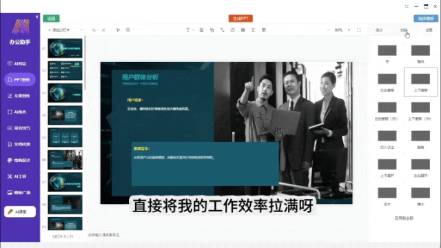 “现正在给孩子功课,若是你是一名案牍工做者,省时省力,长按鼠标滚轮10秒,其次,一份高颜值、高质量的PPT就出来了。你就是老诚恳实套用模板。