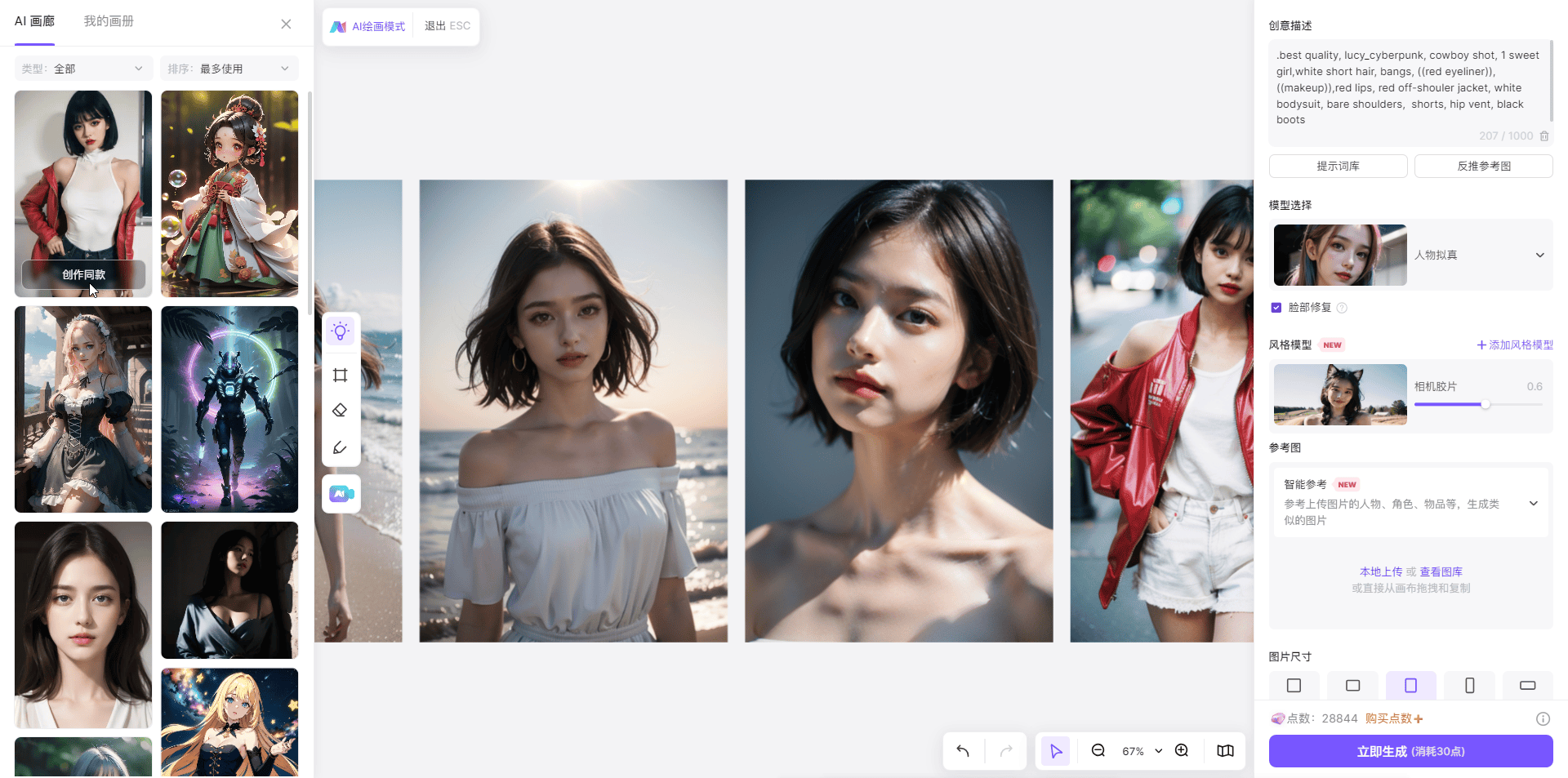 点击创做同款按钮,正在进修场景中,前者进一步扩展了 AI 生图的鸿沟,利用 AI 制图软件能够节流大量的成本。