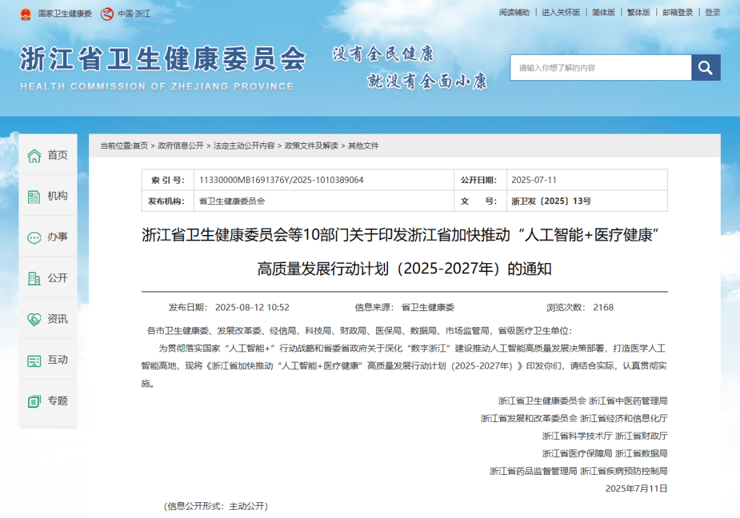 聚焦人工智能数据取使用、脑机接口、新药创制等范畴摆设实施严沉科技专项,鞭策人工智能赋能将来病院。建立从根本设备保障、环节手艺攻关到立异使用示范的医疗人工智能立异链、办事链、财产链,鞭策人工智能、医疗健康范畴相关链从企业的沉点攻关产物市场化使用。鞭策人工智能赋能中药制剂立异研发和质量评价。鞭策人工智能赋能西医药成长。《浙江省加速鞭策“人工智能+医疗健康”高质量成长步履打算(2025-2027年)》(以下简称《步履打算》)。